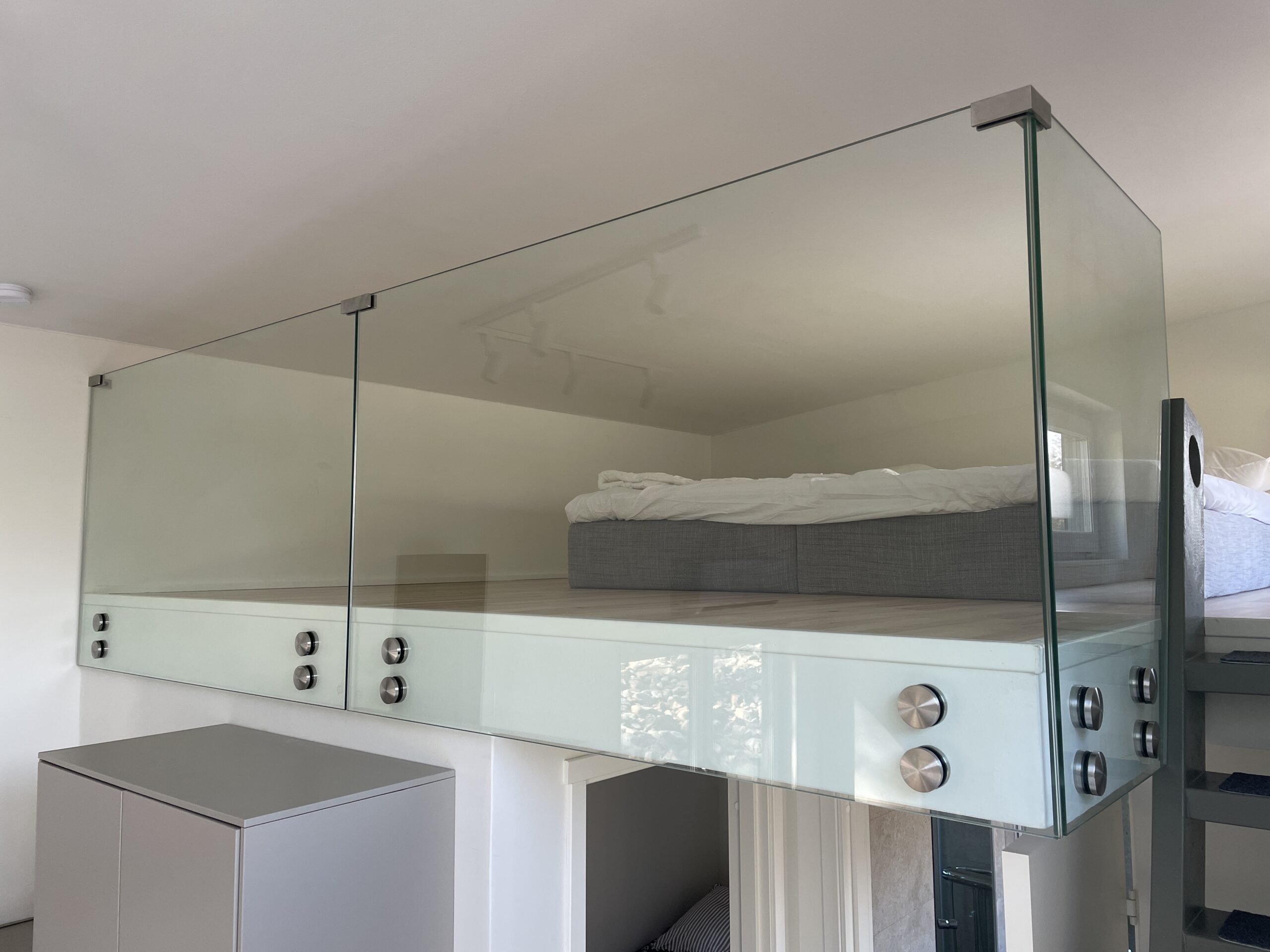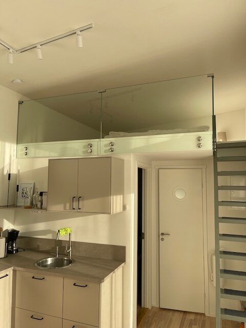 Helglasräcke utan stolpar